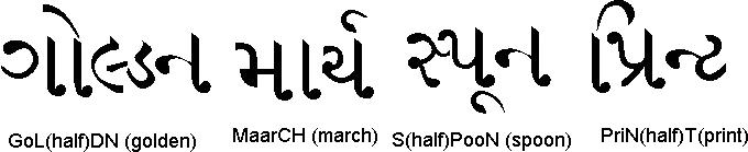 Almost any letter can be written as half letter by missing the final bit of it out. In the next figure all the letters including at the bottom, the half letters are written. You can either copy and paste from here or use Thumbs to convert it into a paintbrush bitmap file and then write your own words using copy and paste at the bottom bit of the figure which is kept clear for you. As an excercise see if you can match the half letters at the very bottom of the figure below with their corresponding full shape in the top half of the figure.